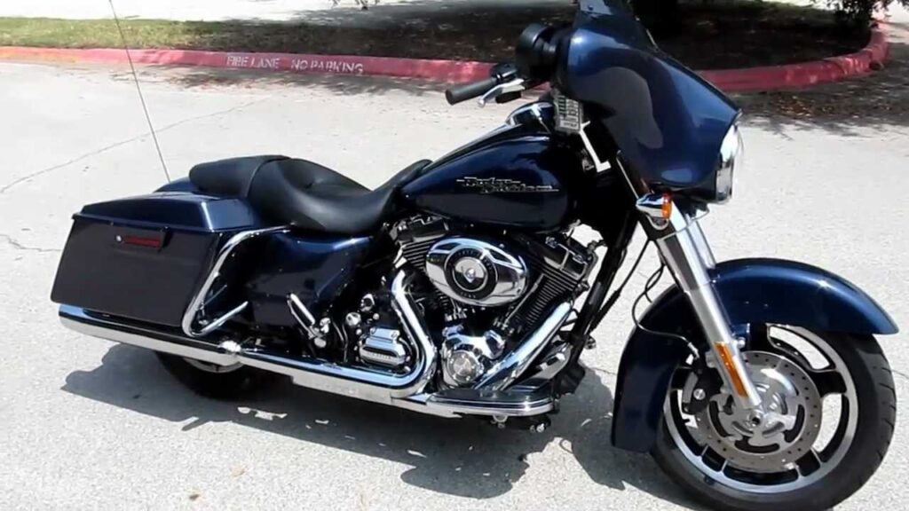 Black powder-coated engine with chrome treatment covers; “Batwing”, forkmountedfairing with integrated side mirrors; Chrome, low-profile fuel tank console; Clear-lens reflector-optics headlamp; Full-length height adjustable rider footboards; Passenger footpegs; New redesigned rider footboard supports for increased lean angle; Stainless steel, classic touring handlebars; One-piece, two-up Street Glide® classic seat; Lightly smoked, Electra Glide® low windshield; Injection-moulded GTX® saddlebags with locks; Harman-Kardon® Advanced Audio System; Cruise control;